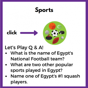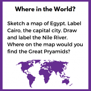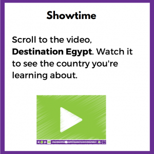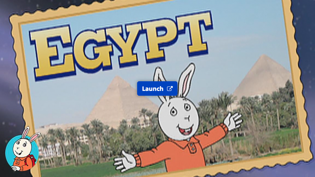 Join Buster Baxter, a character from the ARTHUR television show, on a trip to Egypt, in this interactive geography lesson. Learn about Cairo, ancient Egypt, the pyramids, and the Nile River as you travel with Buster and meet new friends. Afterward, write about what you’ve learned in the form of a postcard to one of the Egyptian children you met in the videos.