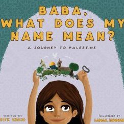 Based on the book, Baba What Does My Name Mean? (above) written by Rifk Ebeid and illustrated by Lamaa Jawhari.